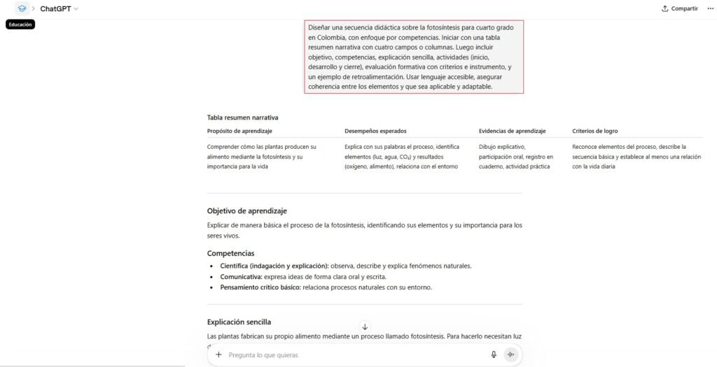 La utilidad aumenta cuando el entorno incorpora “modos” de trabajo explícitos. Un esquema operativo recomendable incluye cinco modos: planificación, explicación didáctica, tutoría guiada, práctica/evaluación y revisión/mejora. Así se reduce la ambigüedad y se estandariza el tipo de salida esperada.