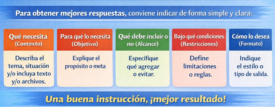 Aplicar buenas prácticas permite obtener respuestas más acertadas desde el inicio, reducir la necesidad de correcciones, disminuir la interacción y optimizar el tiempo en el uso de la herramienta.